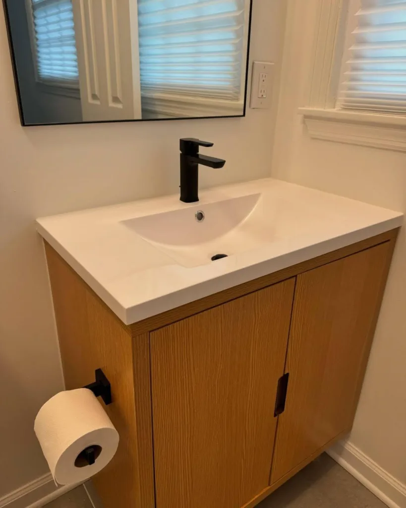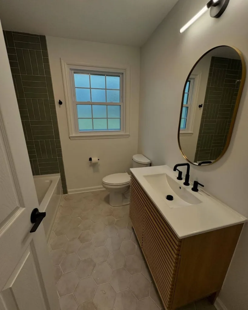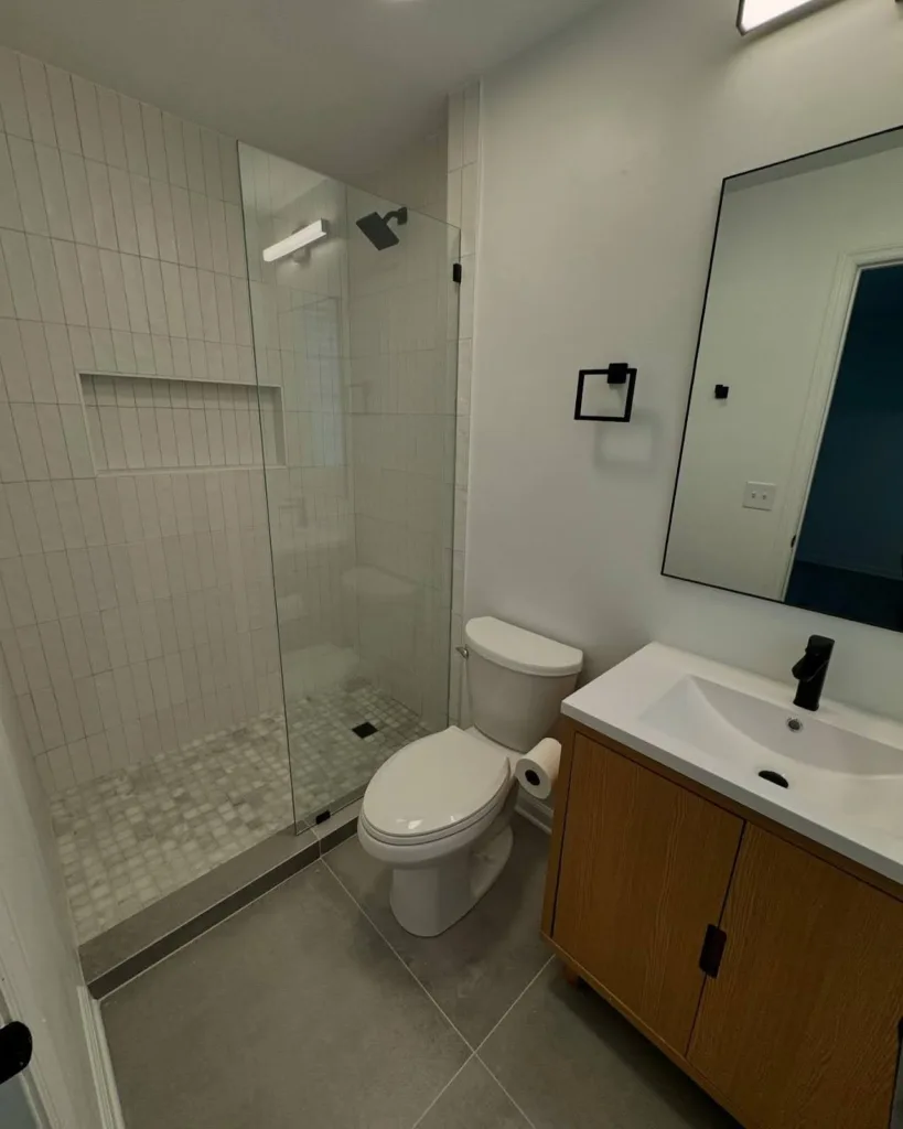 Clean, simple and modern with this two full bathroom renovations as a part of our recently completed Hunters lane house flip.