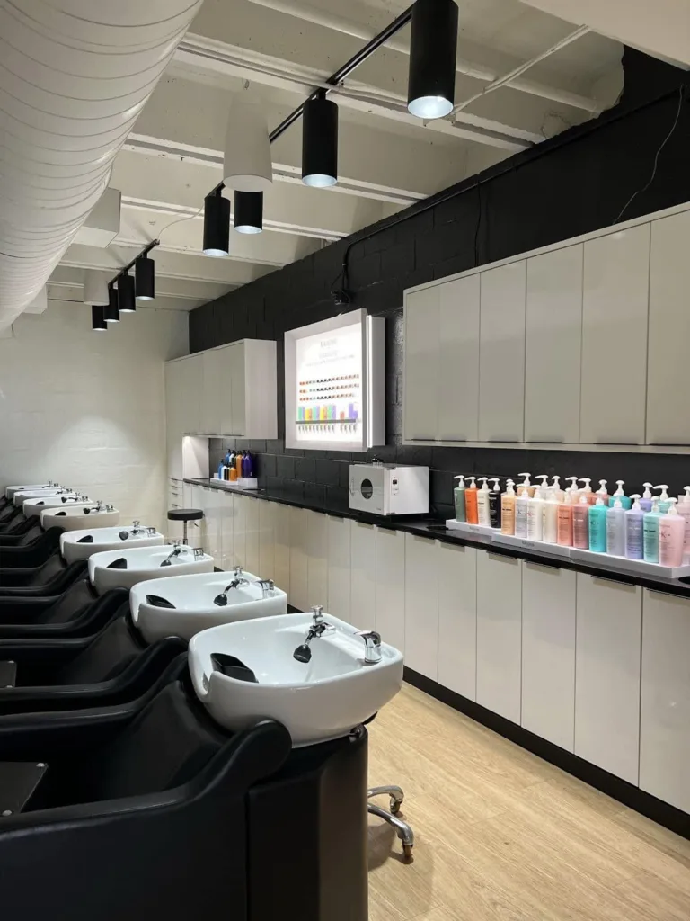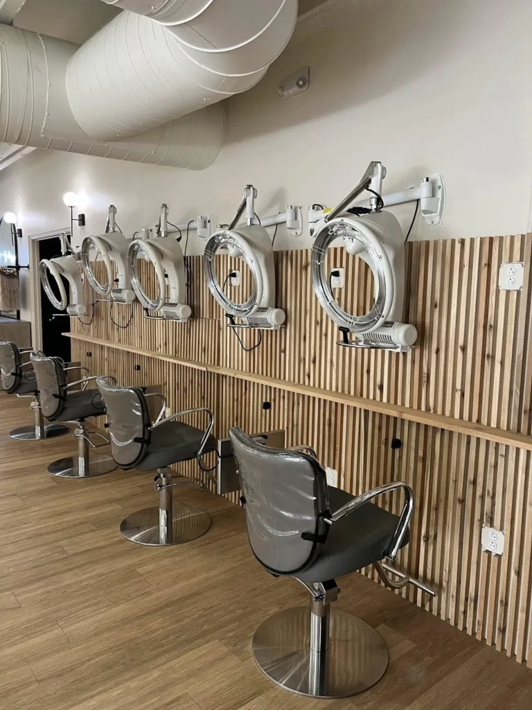 Our team completely transformed the existing 4,700 sq ft retail space upgrading all utilities and added fresh modern finishes. Salon features 8 hair washing sinks, 23 salon chairs, 4 unique restrooms, break room, office, retail area, 3 flex rooms and coffee bar.