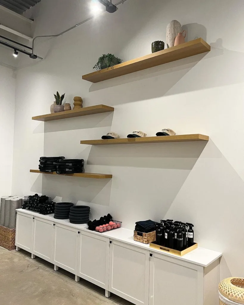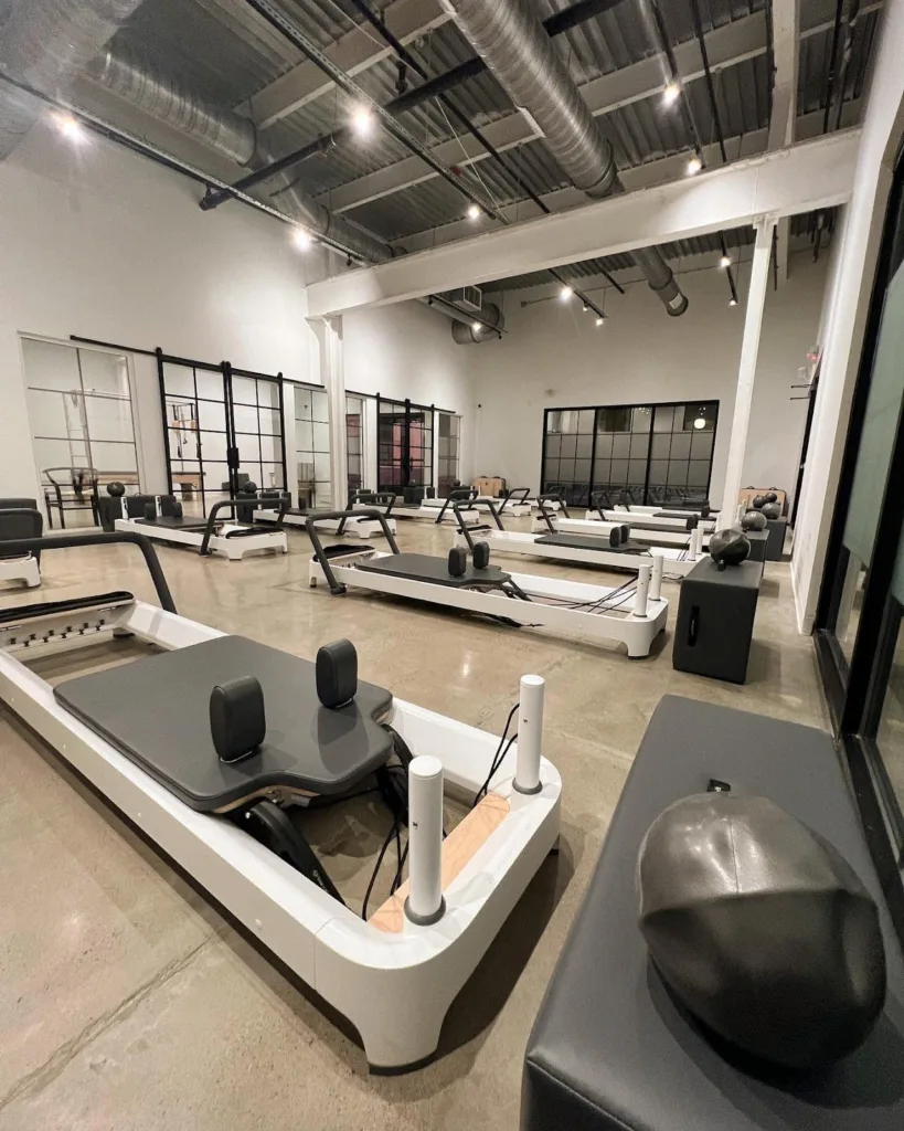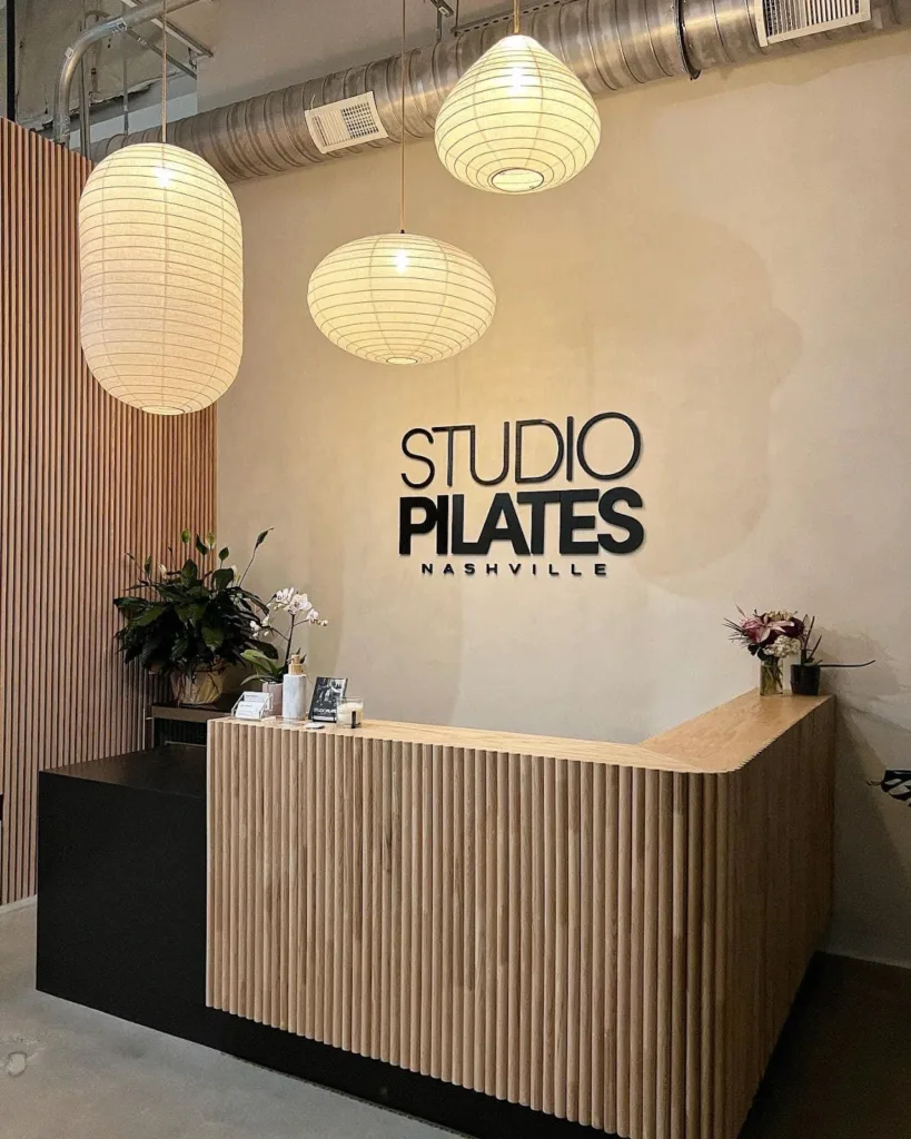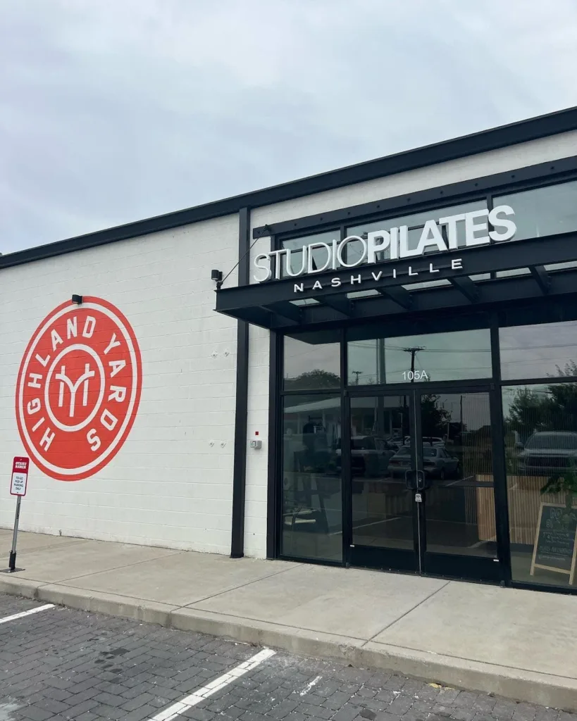 Studio Pilates @ Highland yards. Our commercial team recently completed this 2,000 Sq Ft Pilates studio build out. The industrial modern finishes feature an oak slat wall, lime wash feature wall, custom front desk, glass/steel French and barn doors and exposed ceilings.